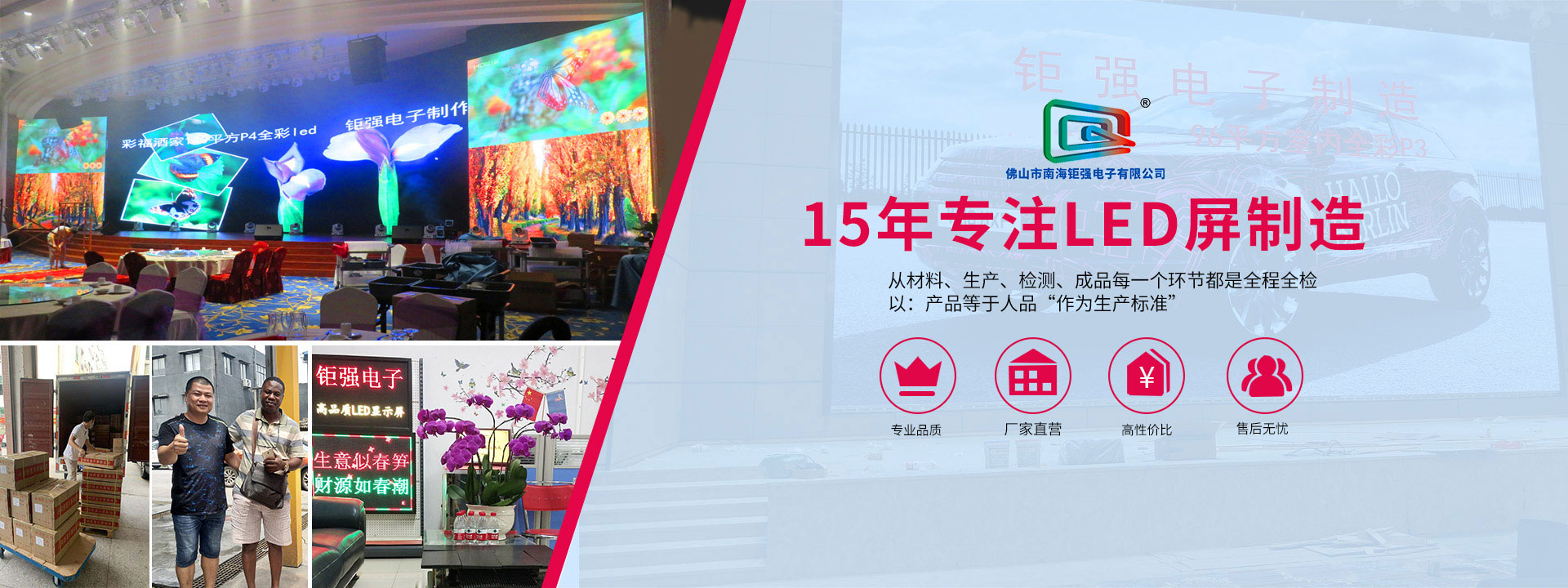 佛山市南海鉅強(qiáng)電子有限公司是專業(yè)致力于LED顯示屏的研究、生產(chǎn)、銷售、工程服務(wù)的企業(yè)。主營(yíng)LED顯示產(chǎn)品:室內(nèi)小間距LED顯示屏、室內(nèi)全彩LED顯示屏、戶外全彩LED顯示屏、LED舞臺(tái)租賃屏、LED異形屏、排隊(duì)叫號(hào)屏、車間工業(yè)看板、并批發(fā)多種型號(hào)LED邊框鋁材及相關(guān)配件...
